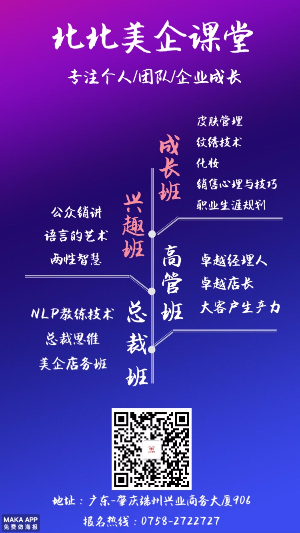 2016年9月成立肇慶分公司,連接廣佛、輻射粵西。北北美業(yè)獨(dú)家首創(chuàng)美業(yè)五行系統(tǒng),從文化、團(tuán)隊(duì)、品項(xiàng)、營銷、顧客五大板塊介入教育、參與店務(wù)建議。迄今為止已服務(wù)百余間美容企業(yè)、培養(yǎng)了數(shù)以千計(jì)的優(yōu)秀美業(yè)人才。