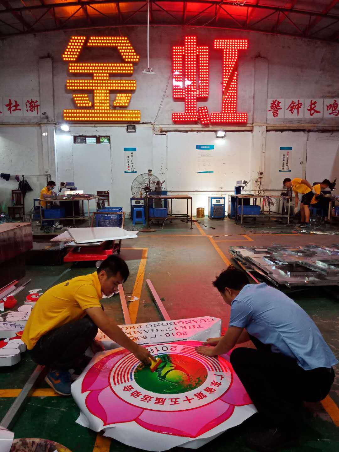 肇慶市金虹廣告標(biāo)識(shí)制品有限公司06年成立于肇慶,經(jīng)過(guò)14年的辛勤耕耘,現(xiàn)已是一家專業(yè)大型的集廣告金屬字系列、LED發(fā)光字系列、吸塑系列、有機(jī)亞克力系列、標(biāo)牌工藝系列、戶外亮化工程系列、戶外廣告招牌工程(鋼結(jié)構(gòu)工程、數(shù)碼噴繪、全彩印刷),于一體的專業(yè)制造生產(chǎn)企業(yè)。