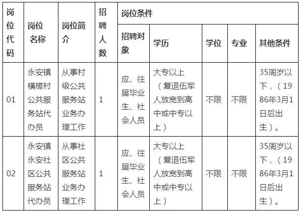 本次公開(kāi)招聘村(社區(qū))公共服務(wù)站業(yè)務(wù)代辦員2名,每人只能報(bào)考一個(gè)崗位。