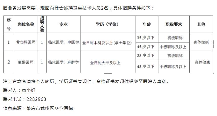肇慶市端州區(qū)華佗醫(yī)院招聘啟事