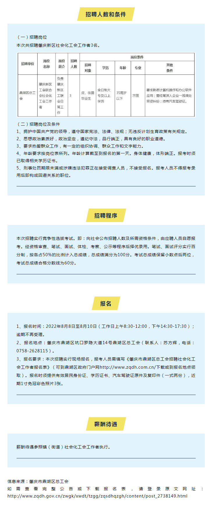 肇慶市鼎湖區(qū)總工會公開招聘社會化工會工作者公告