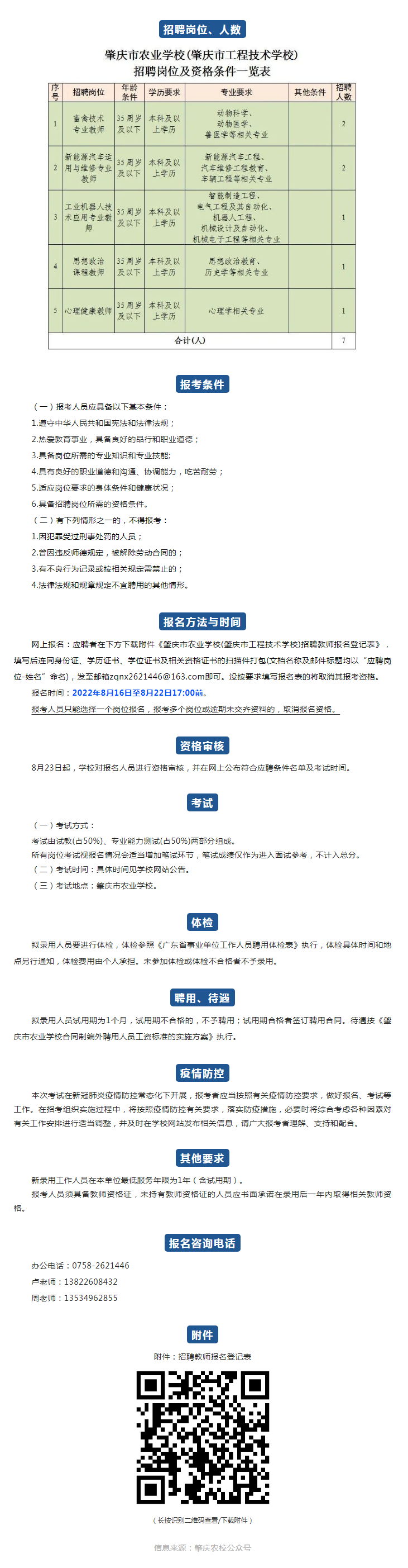 肇慶農(nóng)校招聘合同制編外聘用教師公告