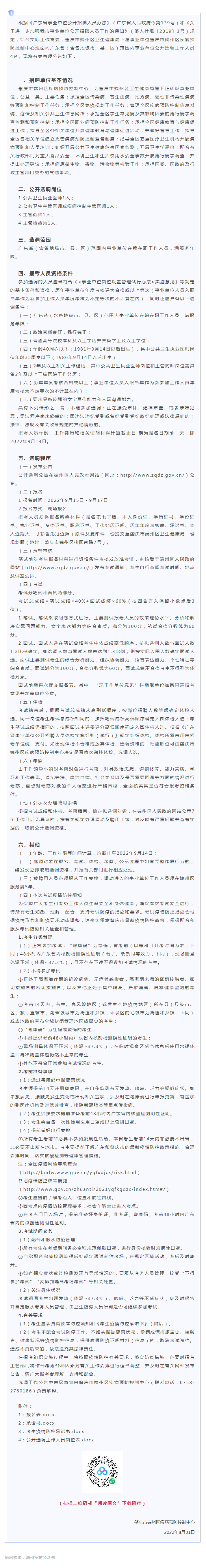2022年肇慶市端州區(qū)疾病預防控制中心公開選調(diào)工作人員公告
