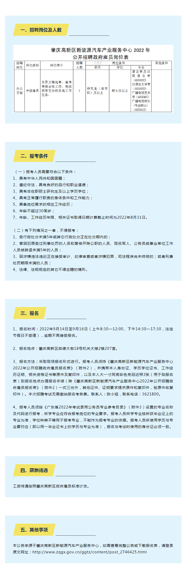 肇慶高新區(qū)新能源汽車產(chǎn)業(yè)服務(wù)中心2022年公開招聘政府雇員公告