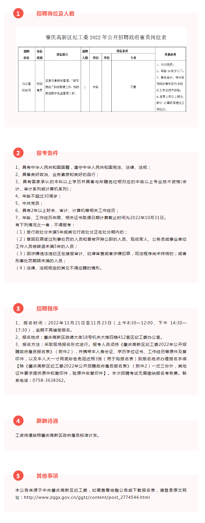 肇慶高新區(qū)紀(jì)工委2022年公開招聘政府雇員公告