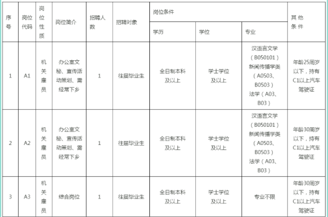 (三)招聘對象:招聘對象為全日制普通高等學(xué)校往屆畢業(yè)生,年齡不超30周歲。往屆畢業(yè)生指2019年9月30日前取得畢業(yè)證書、學(xué)位證書的全日制普通高等院校畢業(yè)生。報(bào)考人員必須于報(bào)名之日前取得招聘崗位須提供的相應(yīng)畢業(yè)證、學(xué)位證書等。