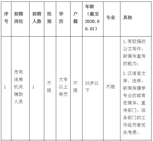 1、市司法局機(jī)關(guān)輔助人員1名。